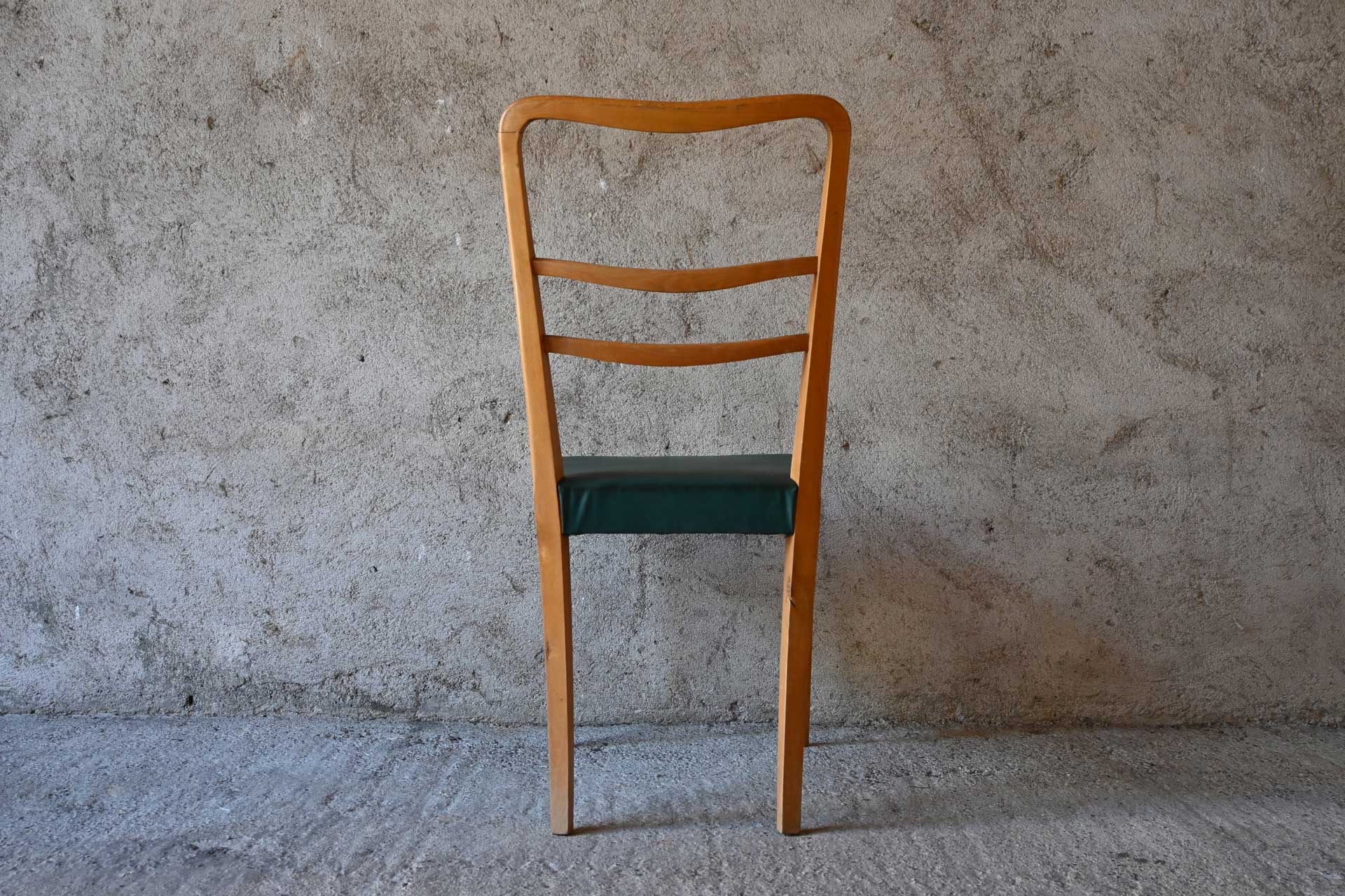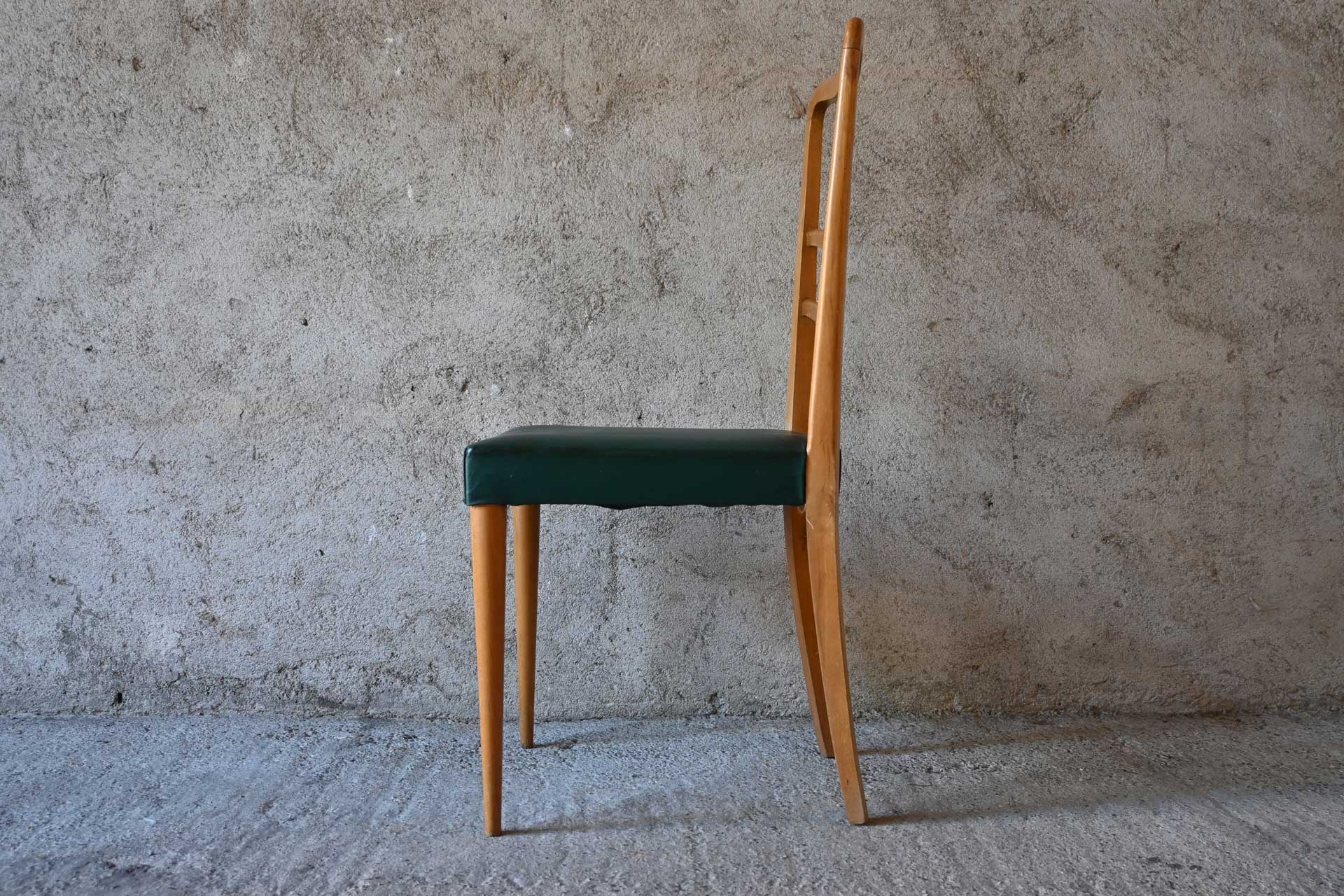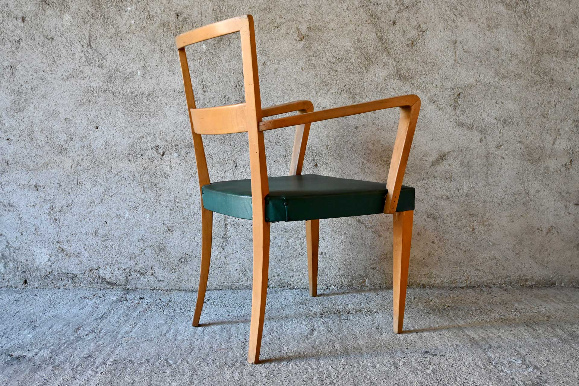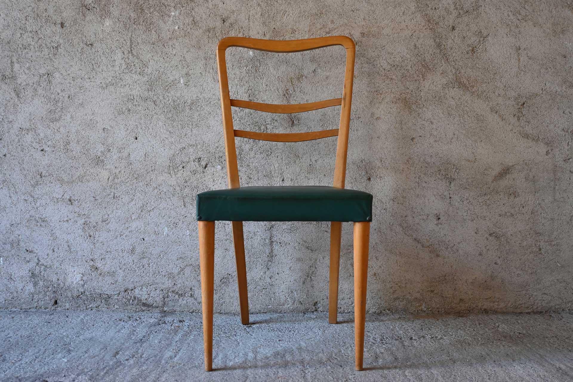 Office chair manufactured by Anonima Castelli Bologna in the year 1950. Wooden structure, original seat upholstered in green synthetic leather. Manufacturer’s stamp under the seat.