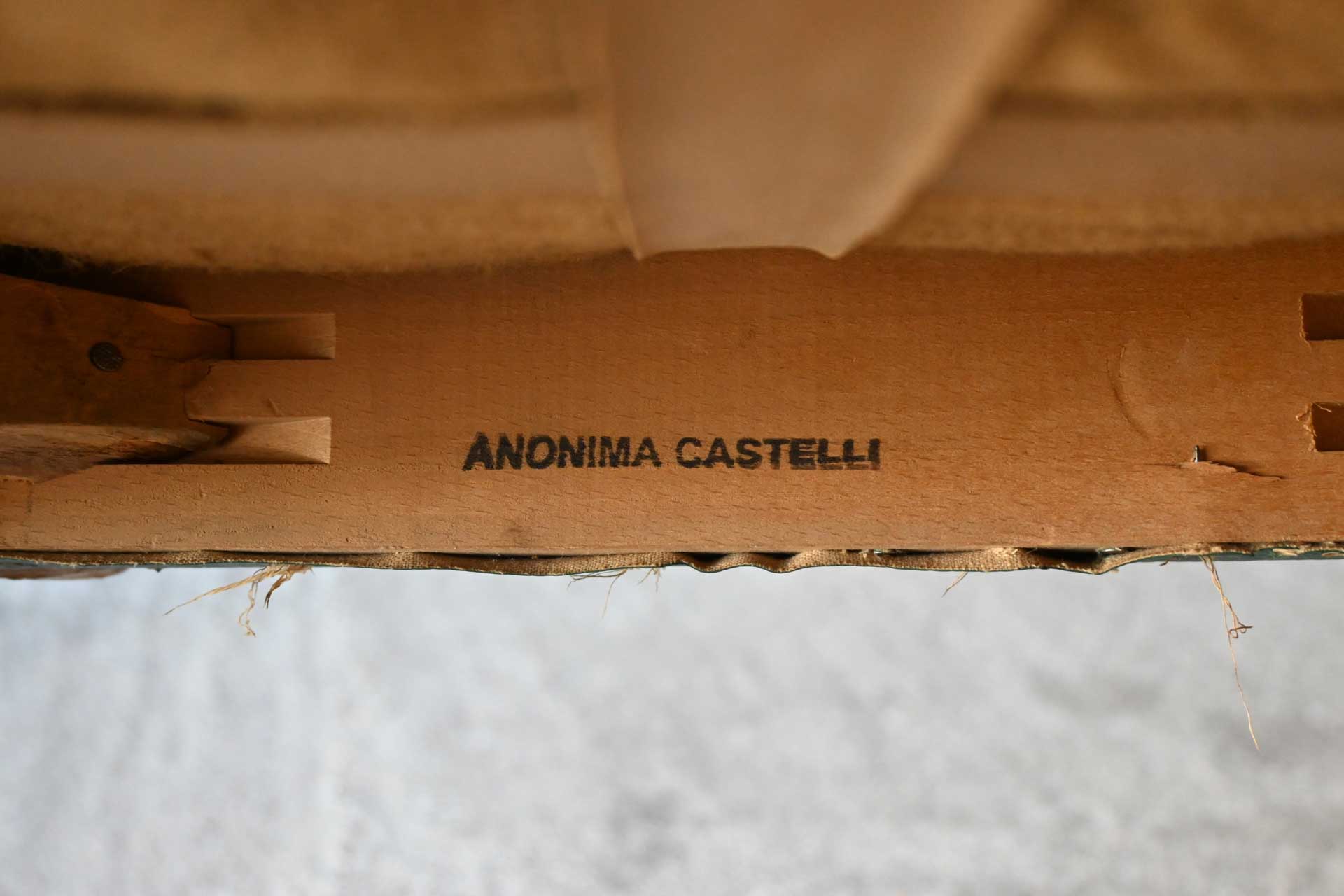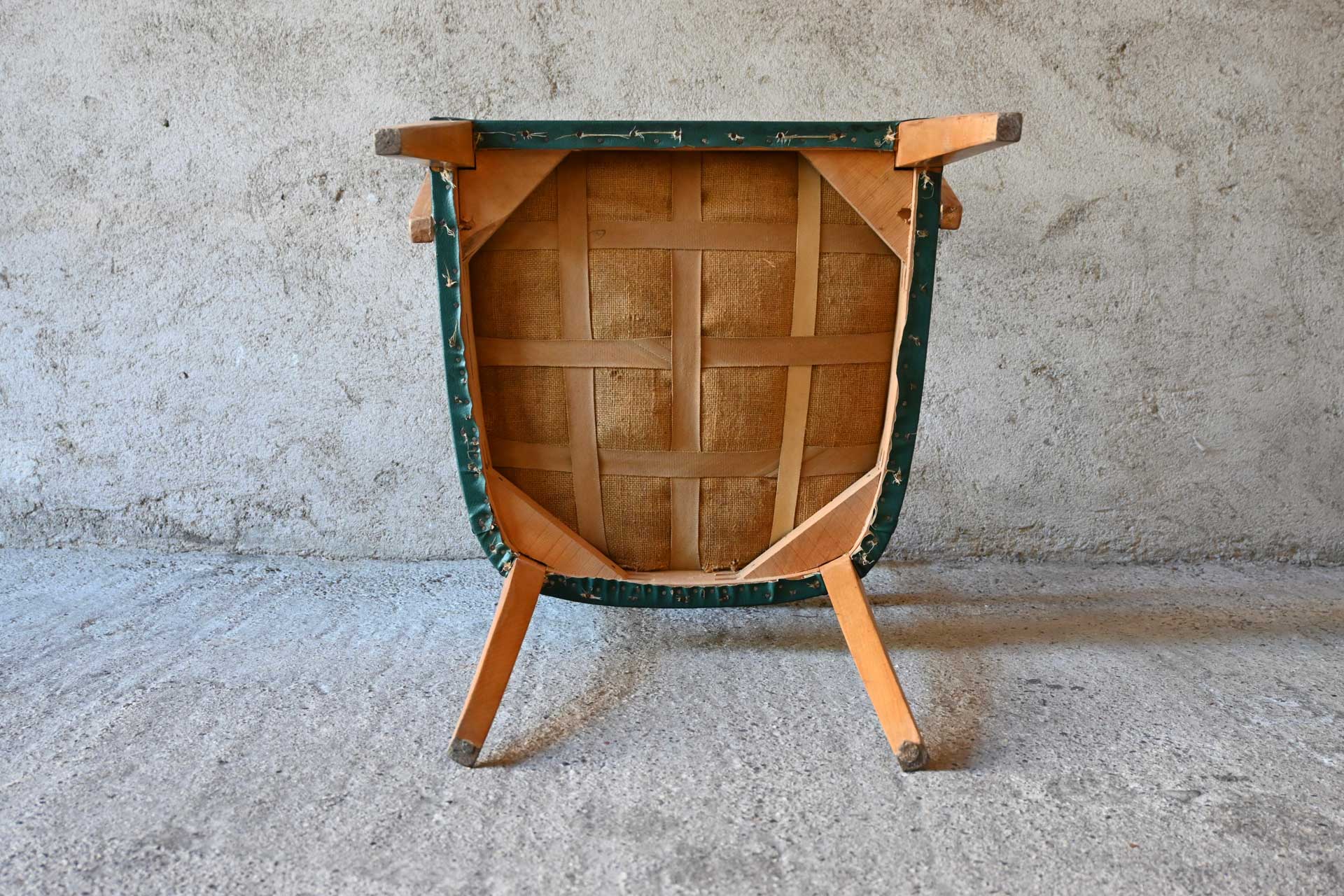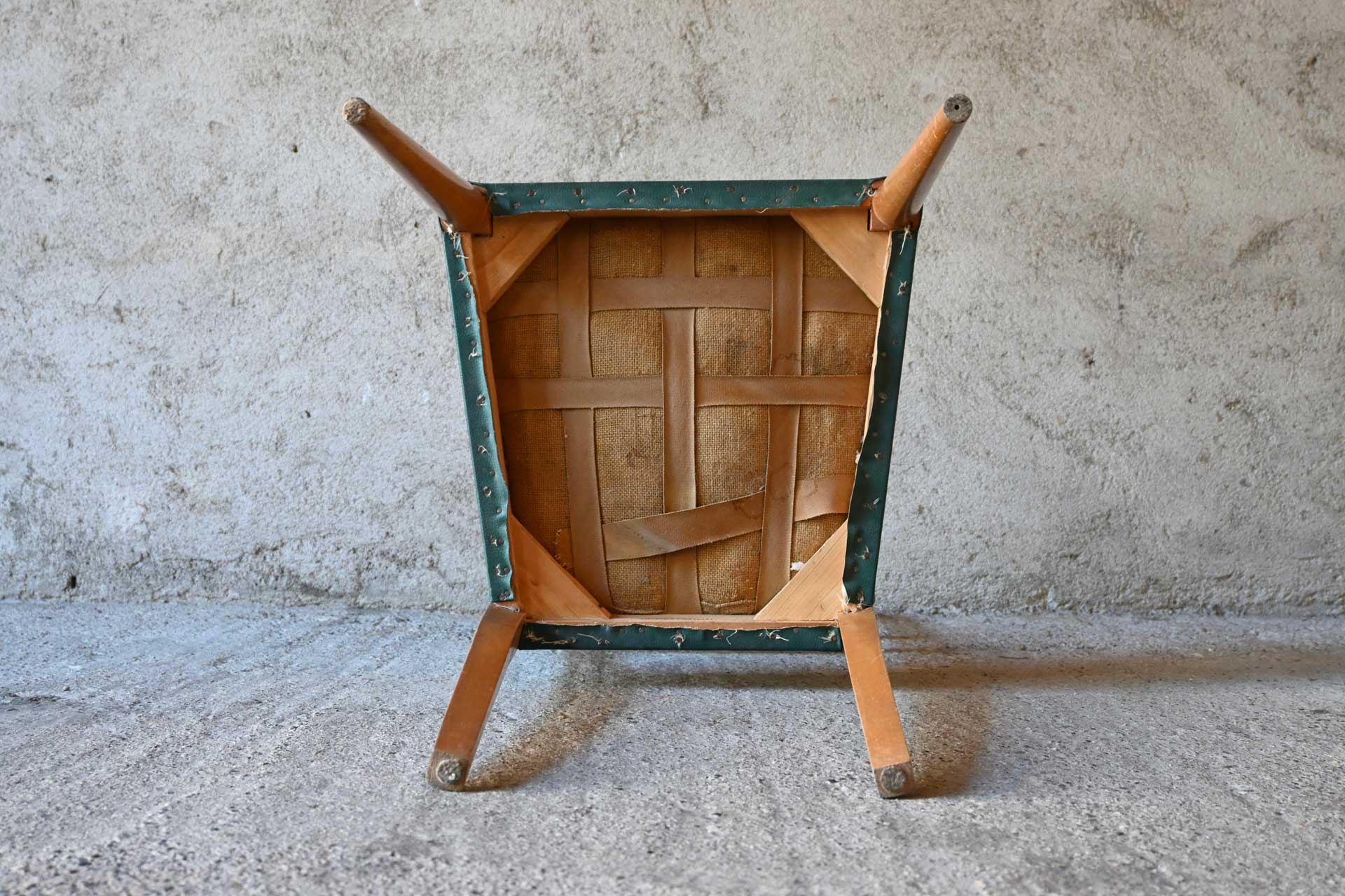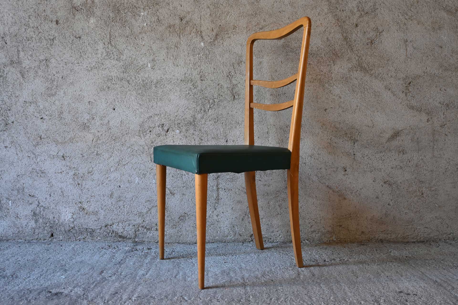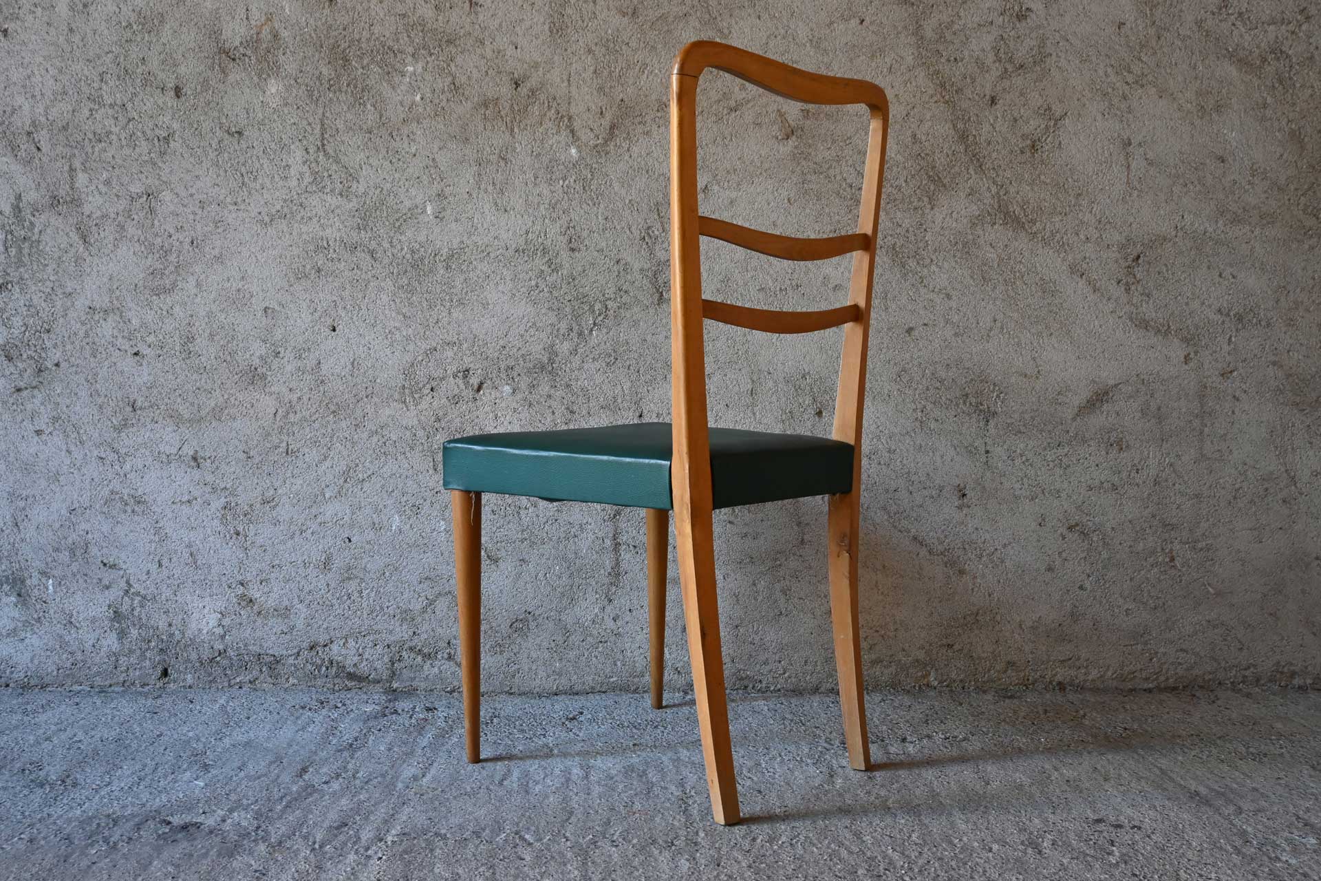 Office chair manufactured by Anonima Castelli Bologna in the year 1950. Wooden structure, original seat upholstered in green synthetic leather. Manufacturer’s stamp under the seat.