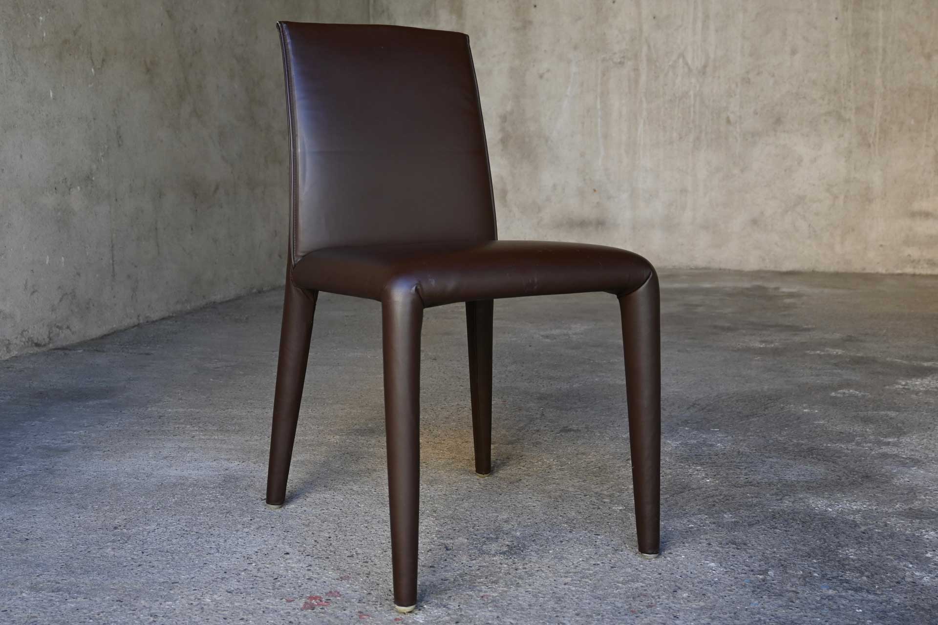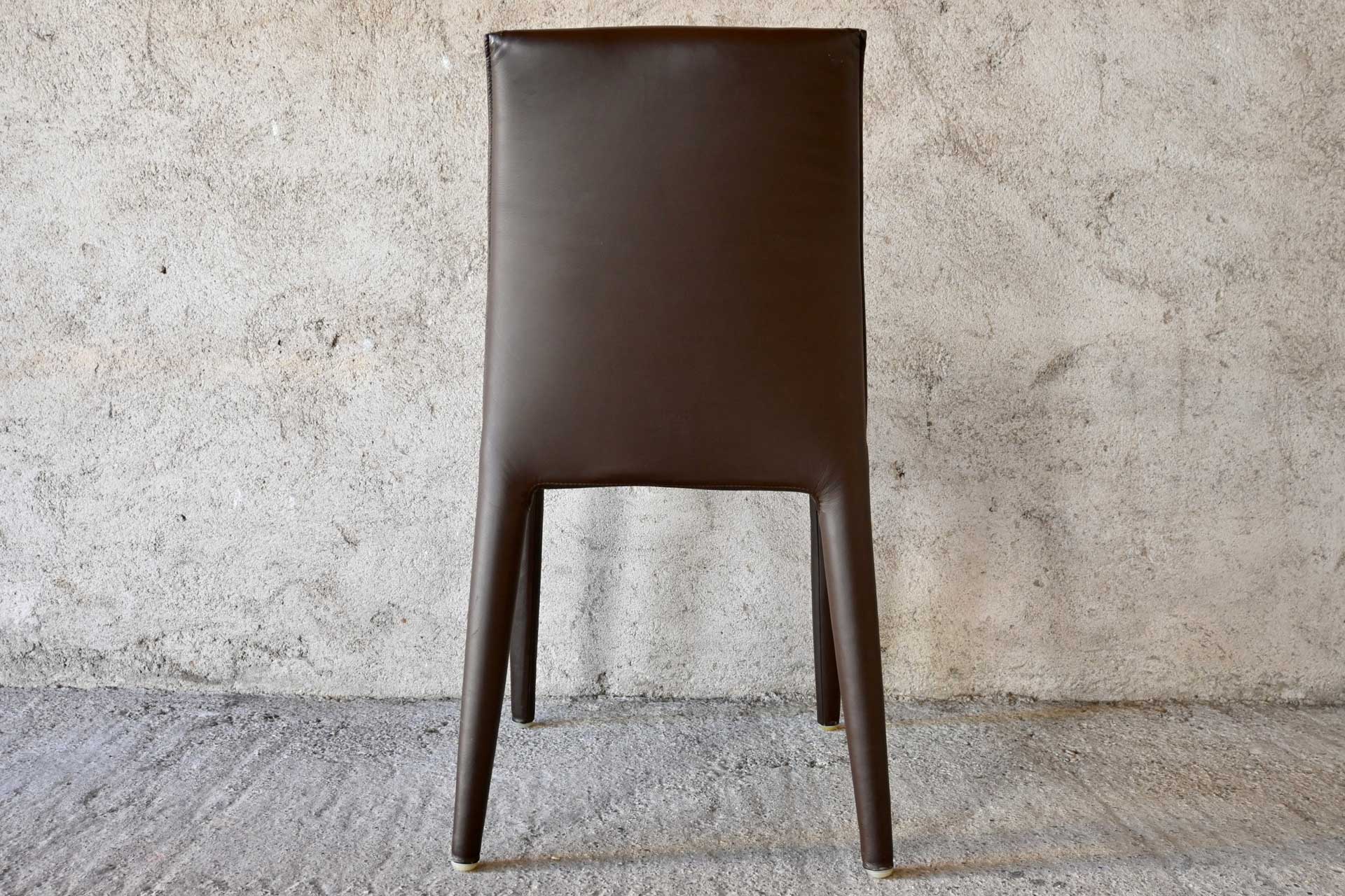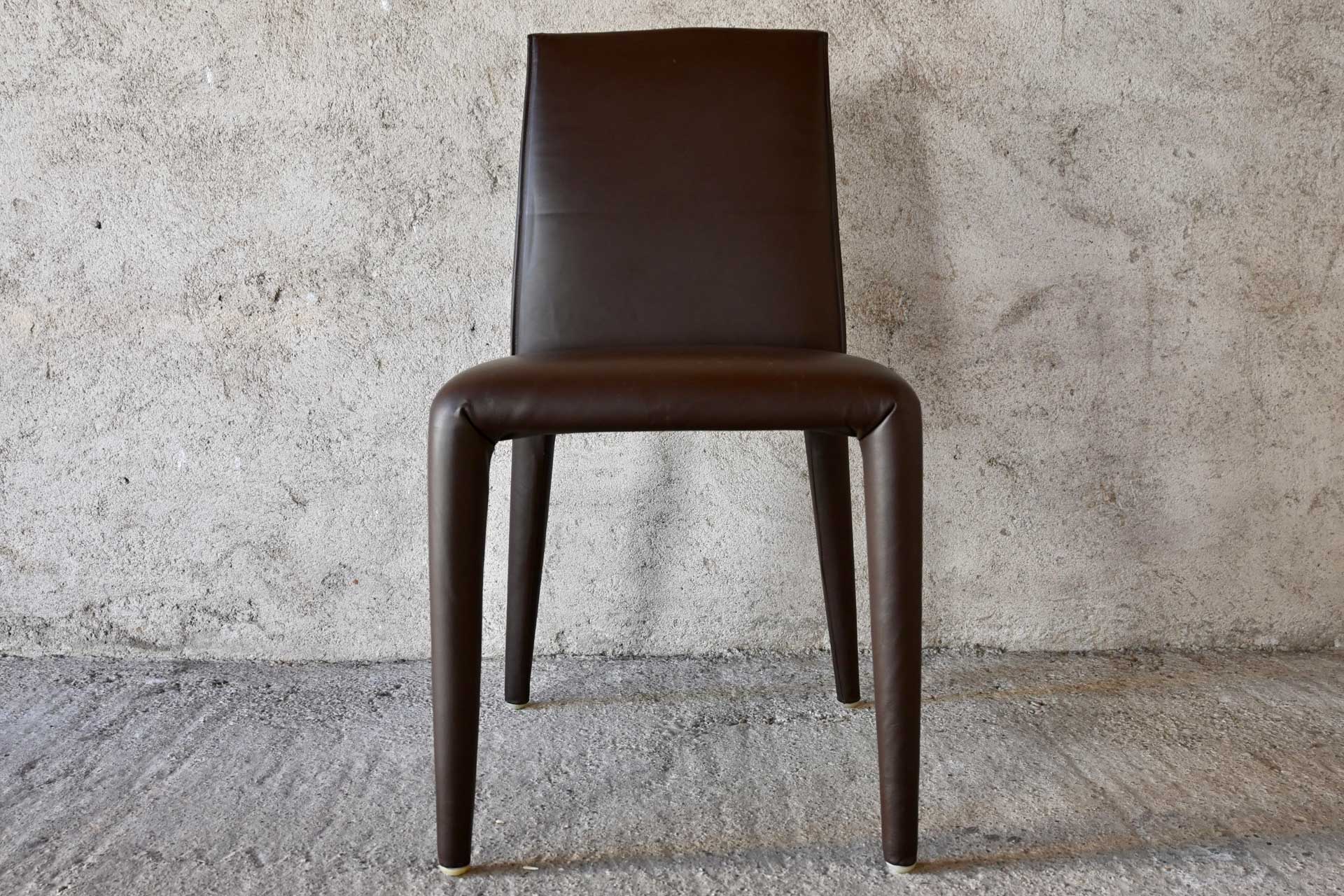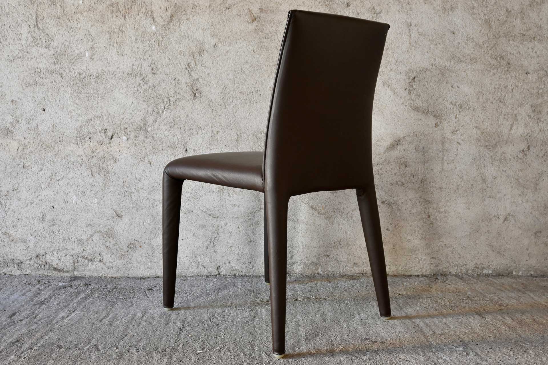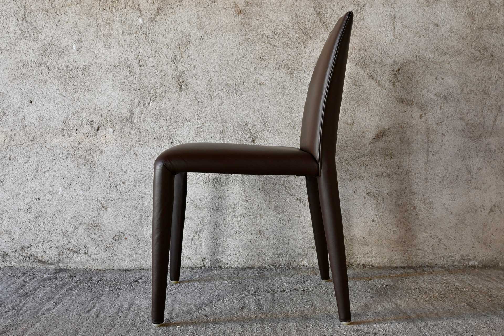 Vol Au Vent chair, B&B Italia, designed by Mario Bellini, 2001. Tubular steel frame and profiles, padded with a single polyurethane foam and upholstered in dark brown leather. Manufacturer and designer label under the seat.