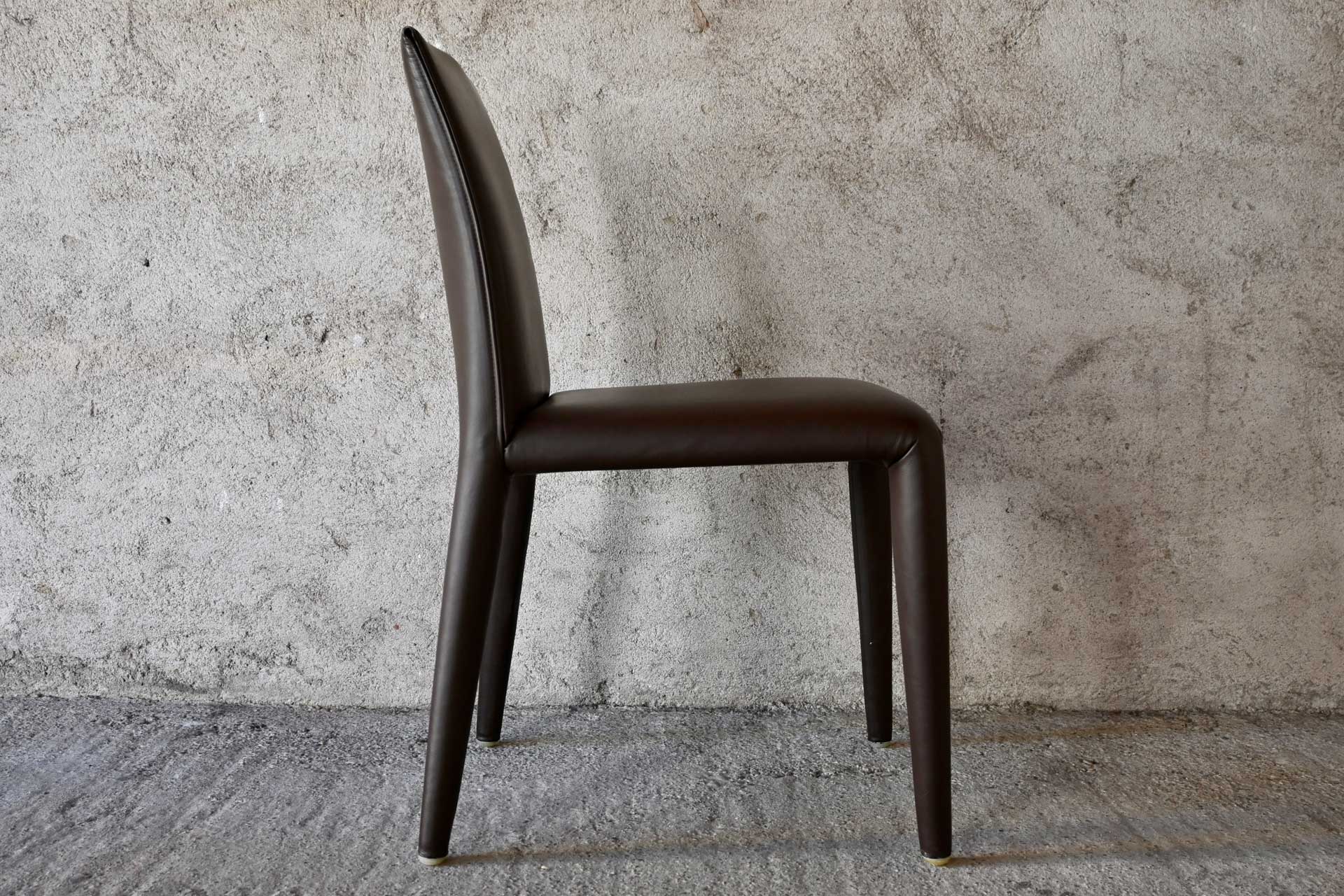 Vol Au Vent chair, B&B Italia, designed by Mario Bellini, 2001. Tubular steel frame and profiles, padded with a single polyurethane foam and upholstered in dark brown leather. Manufacturer and designer label under the seat.