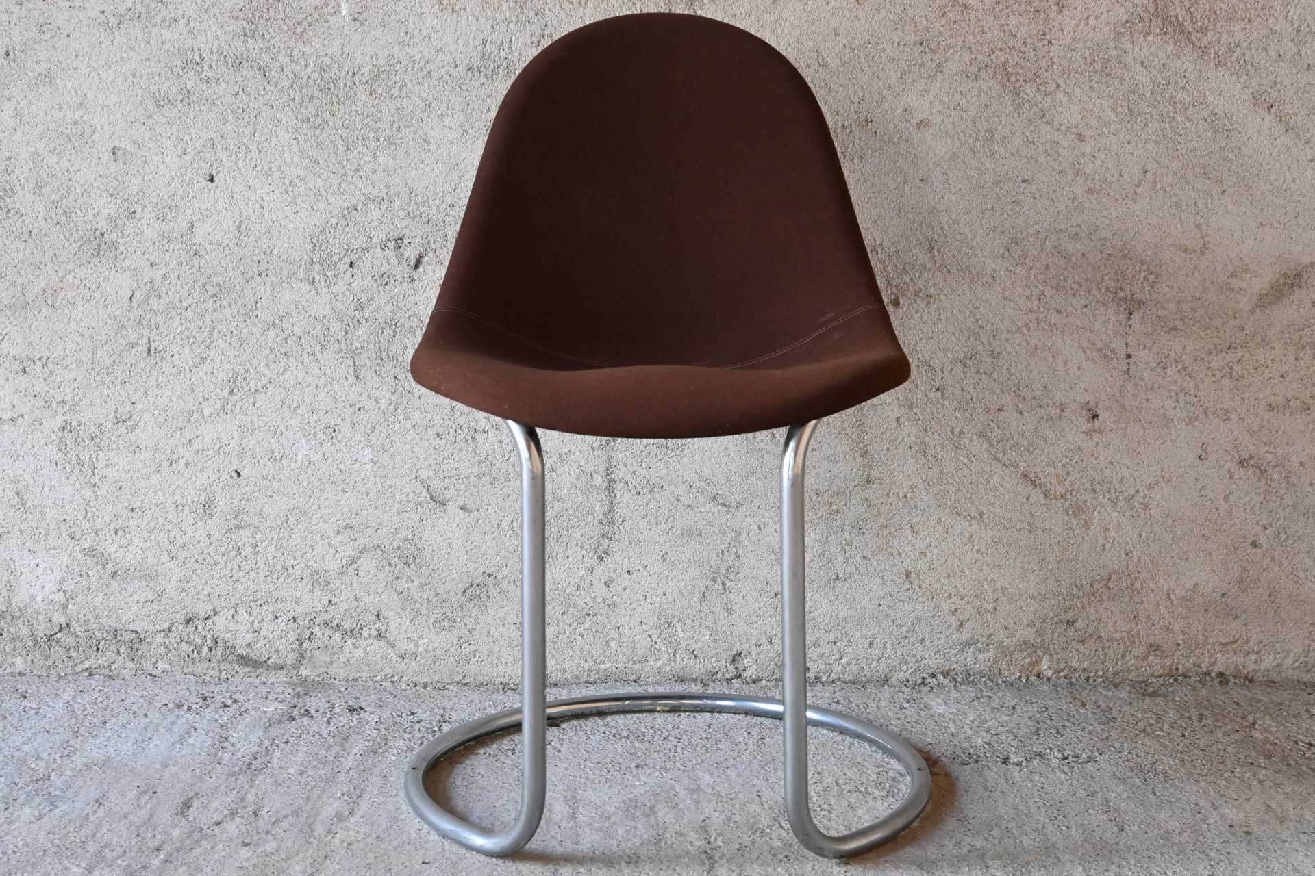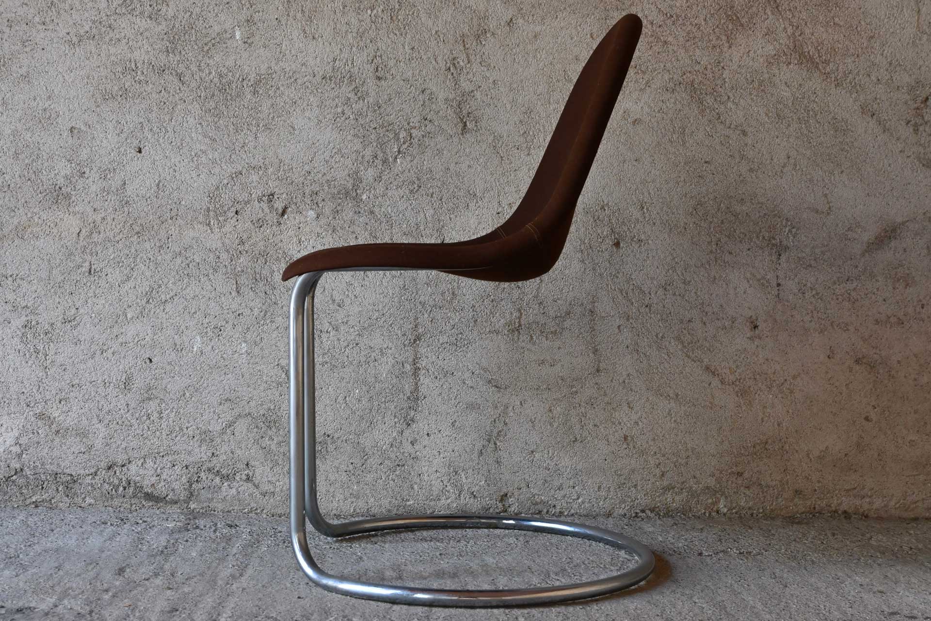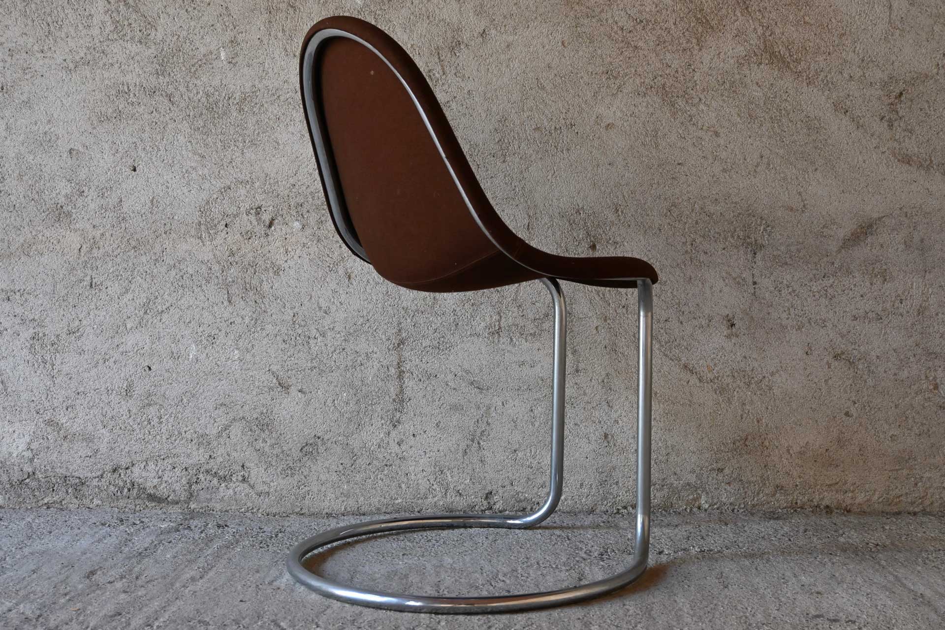 Maia chair, Bernini, designed by Giotto Stoppino, 1969. Chromed steel tubular frame, seat and backrest shell in vacuum-molded ABS and upholstered in brown wool fabric.