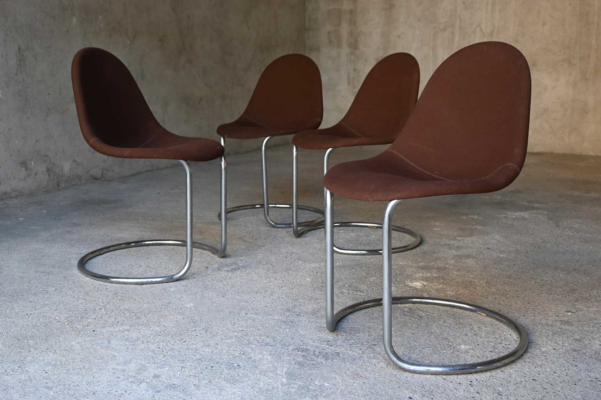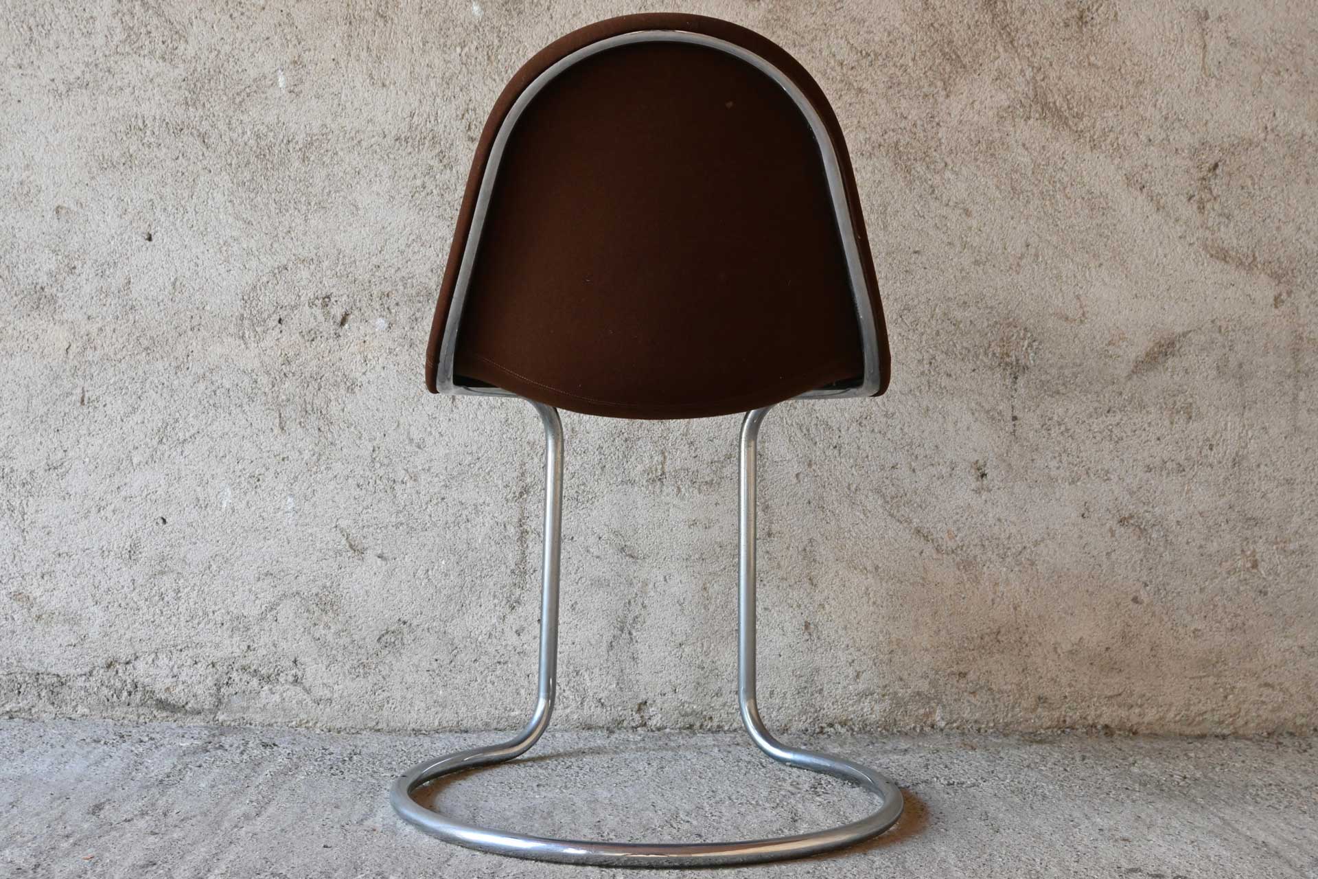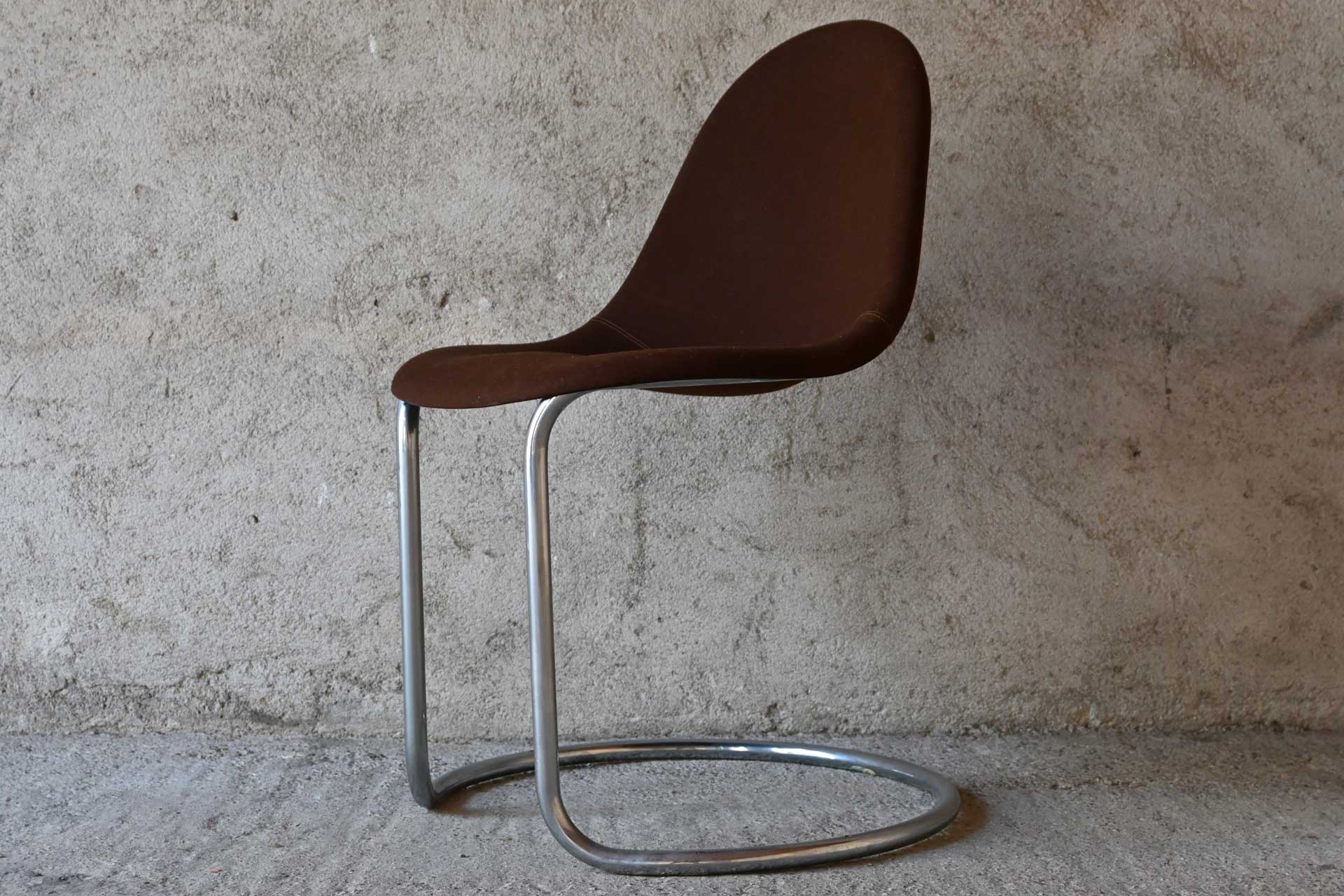 Maia chair, Bernini, designed by Giotto Stoppino, 1969. Chromed steel tubular frame, seat and backrest shell in vacuum-molded ABS and upholstered in brown wool fabric.
