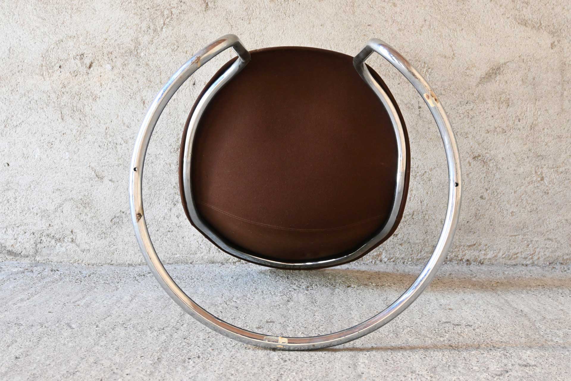 Maia chair, Bernini, designed by Giotto Stoppino, 1969. Chromed steel tubular frame, seat and backrest shell in vacuum-molded ABS and upholstered in brown wool fabric.