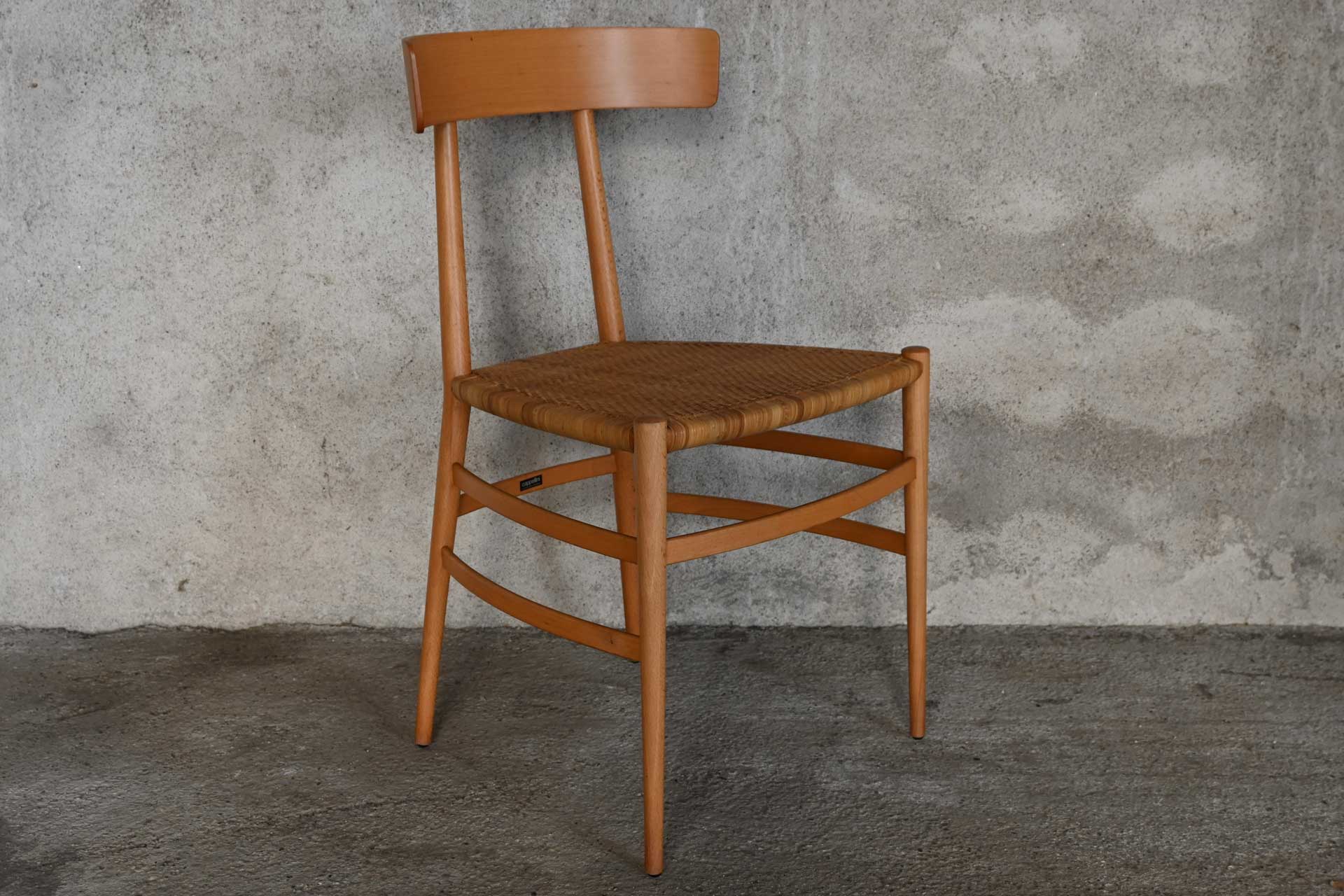 Chiavari chair, produced by Cappellini International, designed by Michele Barro, 1988. Very lightweight natural beech wood frame, woven seat. Manufacturer’s label.