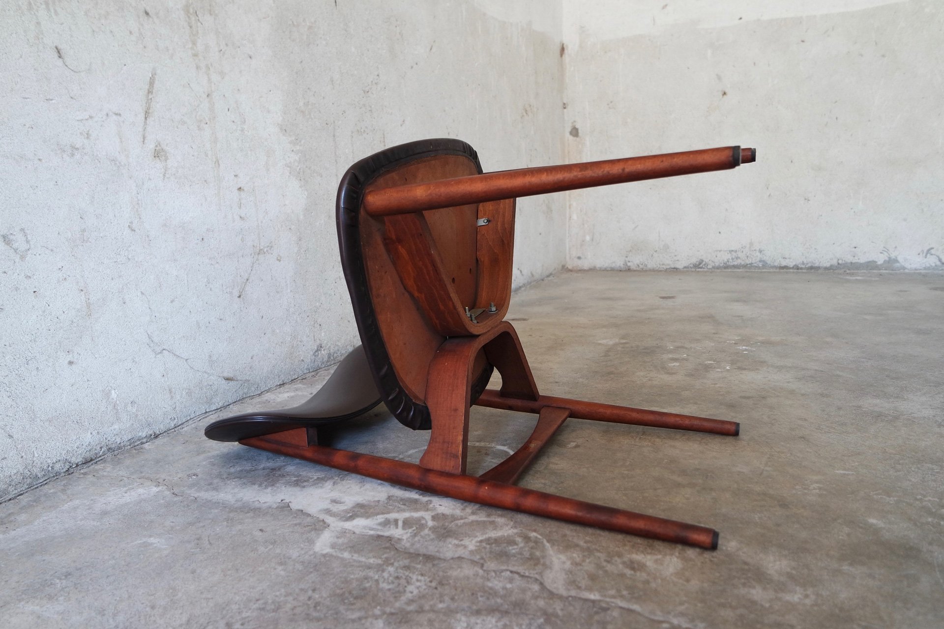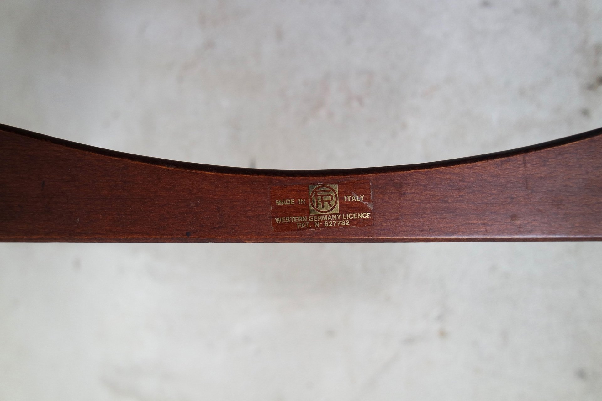Chair Mod. 820 Rekord produced by Fratelli Reguitti branded F.R. Western Germany license pat. N ° 627782 made in Italy. Structure in wood, seat and back in black synthetic leather.