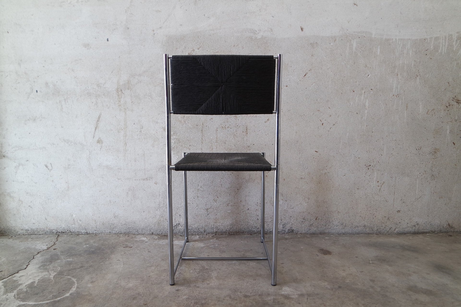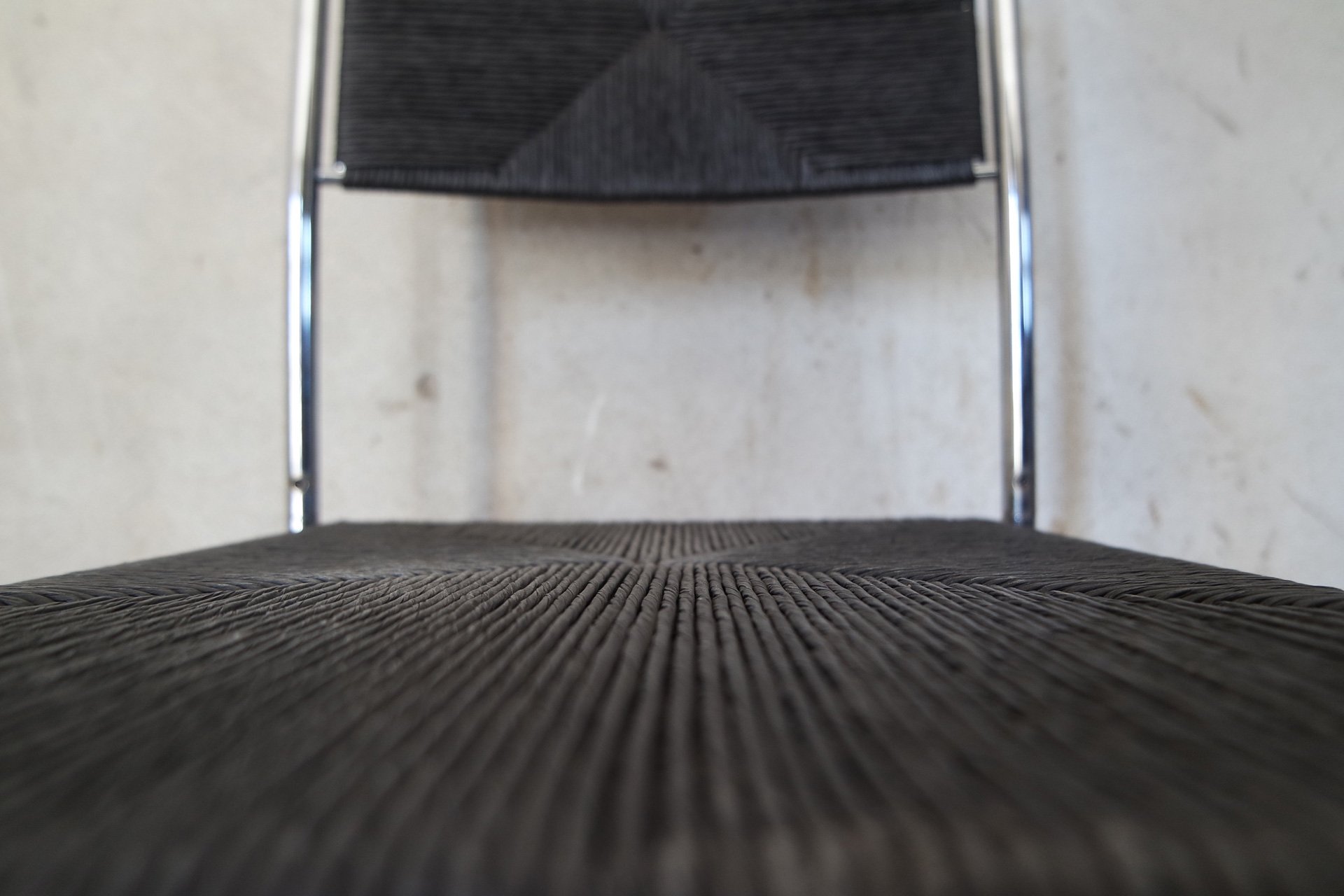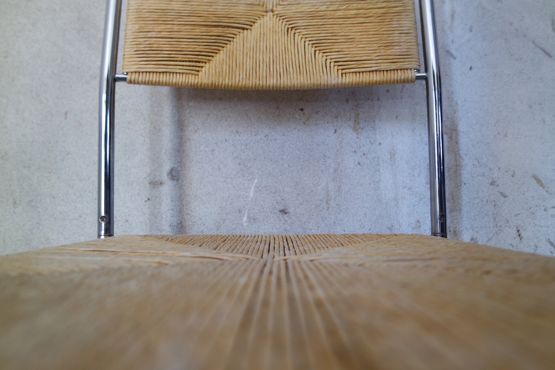 Sedia Paludis produzione Alias design Giandomenico Belotti. Nata dall’evoluzione della famosa sedia Spaghetti, Paludis ha una struttura in metallo cromato, seduta e schienale in speciale paglia intrecciata di carta riciclata di quattro colori differenti.