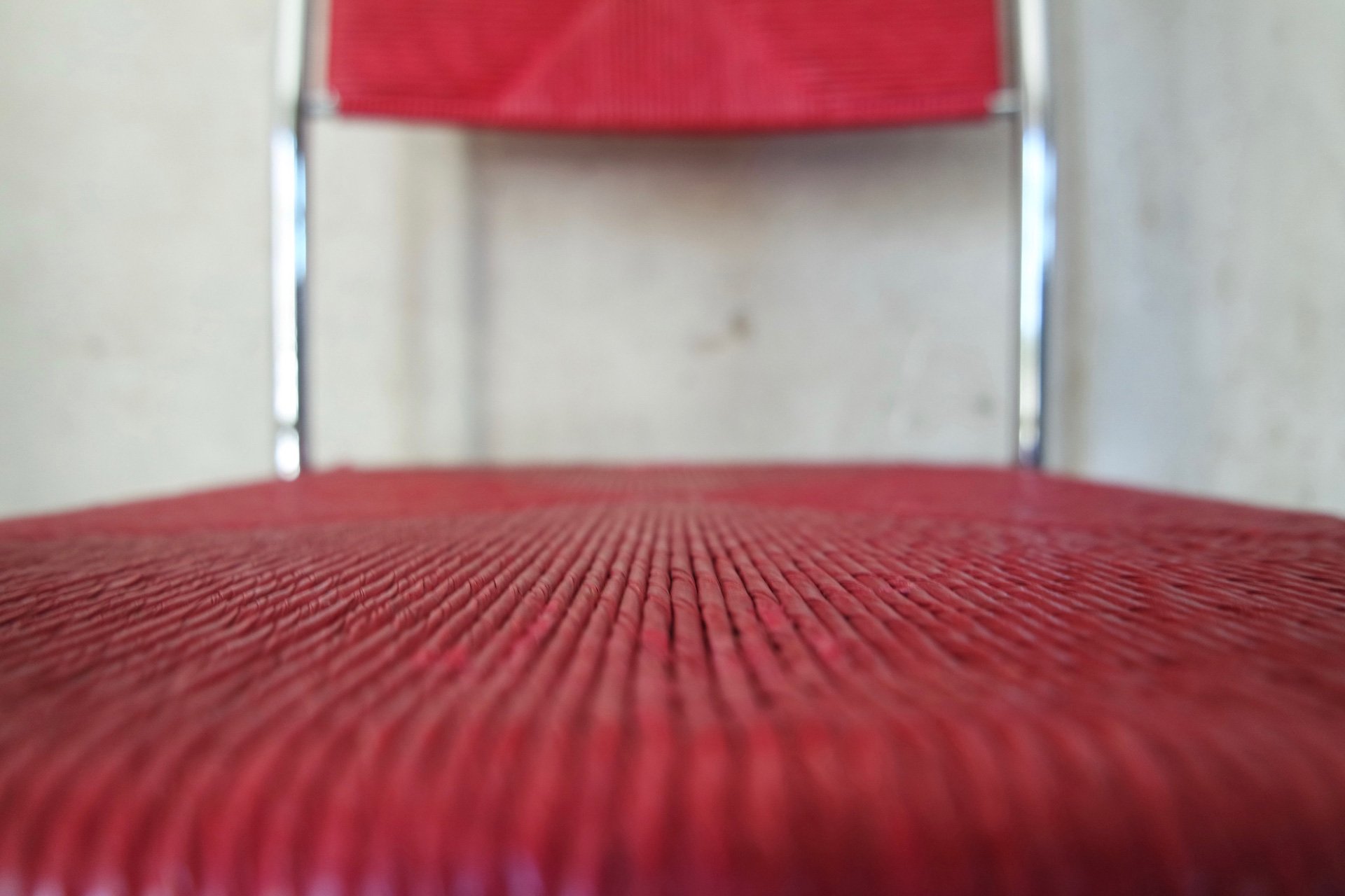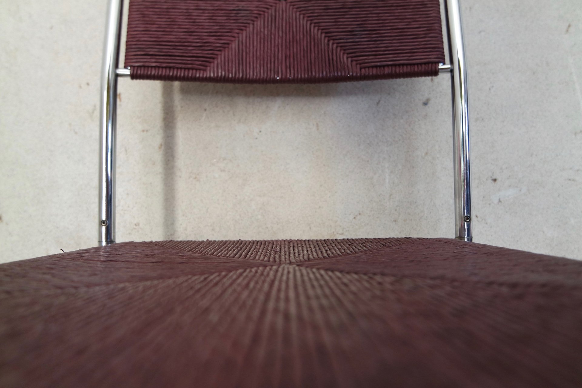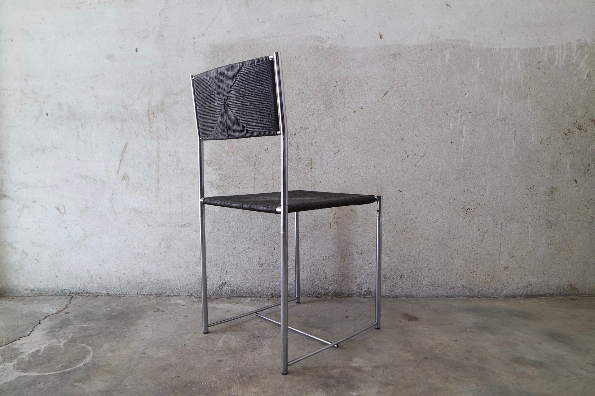 Sedia Paludis produzione Alias design Giandomenico Belotti. Nata dall’evoluzione della famosa sedia Spaghetti, Paludis ha una struttura in metallo cromato, seduta e schienale in speciale paglia intrecciata di carta riciclata di quattro colori differenti.