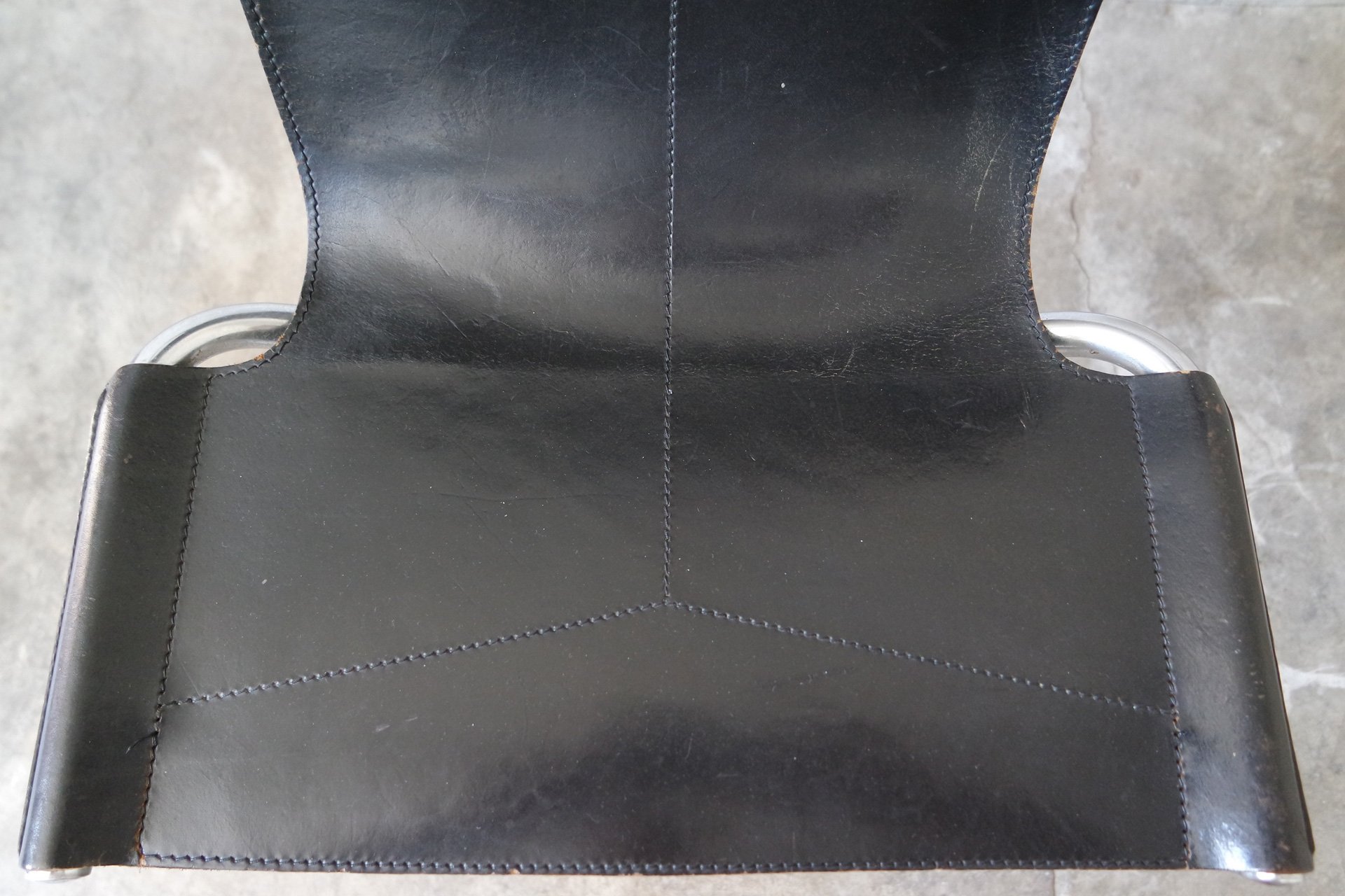 Sedia produzione Gruppo Dam per Gruppo industriale Busnelli Meda modello Topos anno 1969. Struttura in metallo cromato, sedile e schienale in cuoio originale di colore nero.
