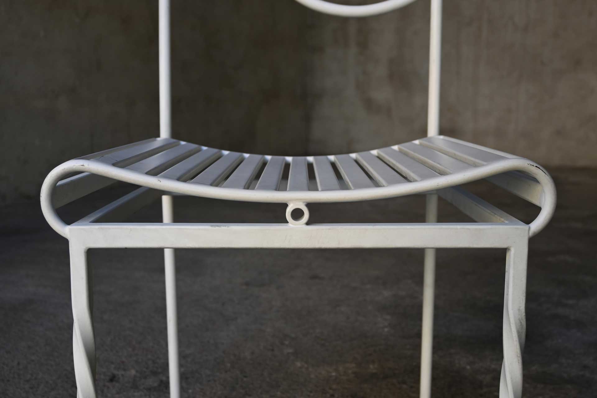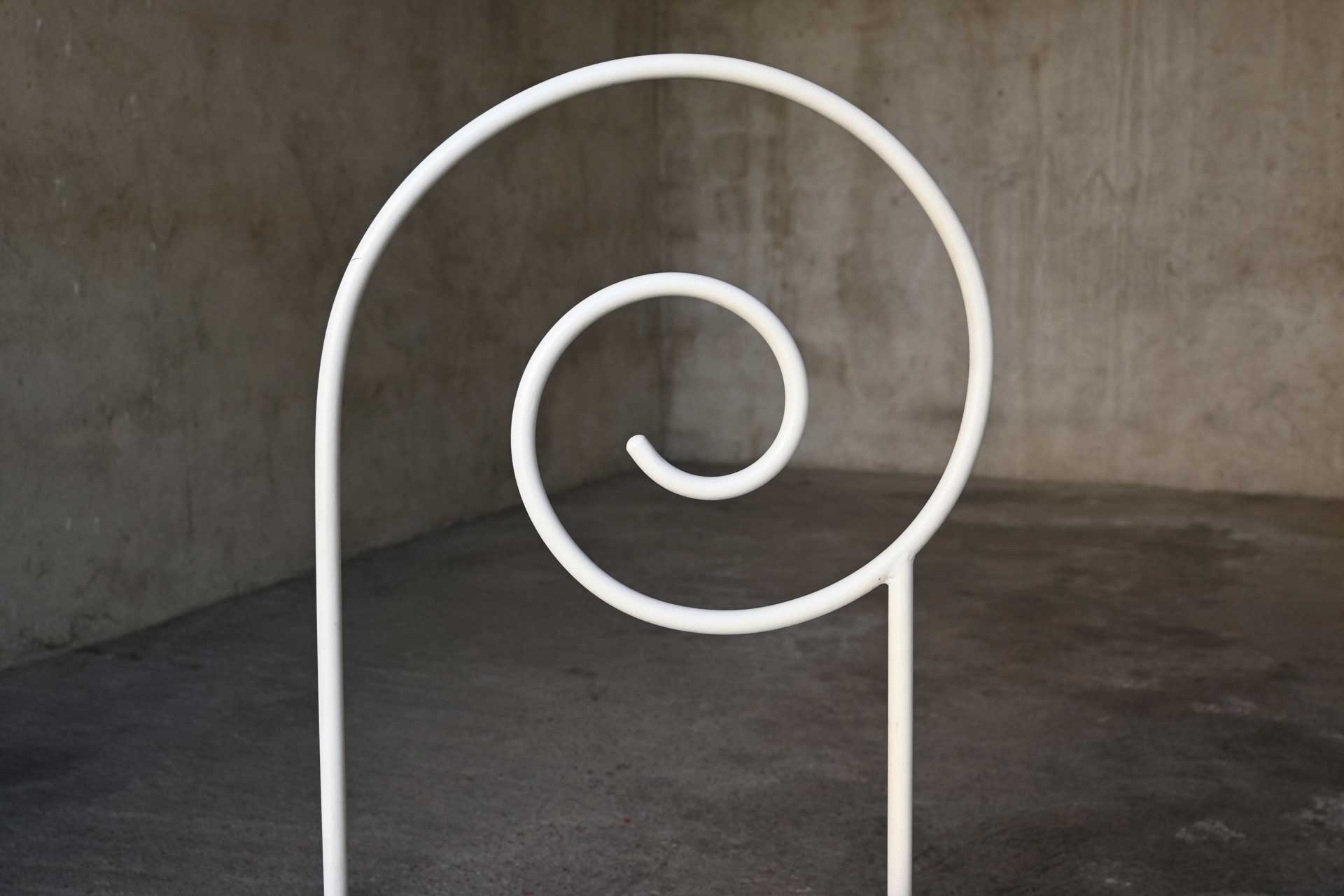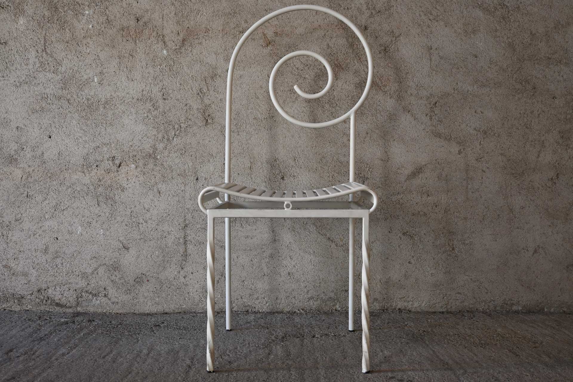 Sedia modello Suspiral produzione Sawaya & Moroni, design Luigi Serafini anno 1983. Struttura tubolare in ferro battuto laccato di colore bianco.